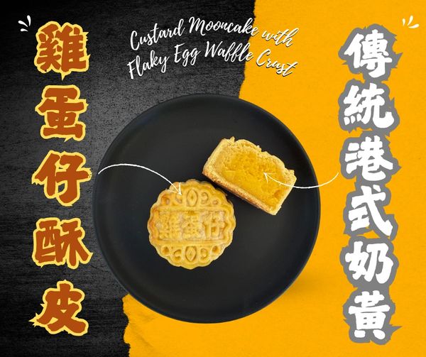By combining the crisp-outside, tender-inside texture of Hong Kong’s iconic street snack—the egg waffle—with a traditional Hong Kong–style custard filling, we created the world’s first Egg-Waffle-Crust Custard Mooncake. The crust inherits the egg waffle’s hallmark: a delicate crispness at first bite, followed by a silky, richly eggy custard with balanced sweetness. Whether for gifting or enjoying yourself, it’s a Mid-Autumn treat that brings childhood memories back in a single bite.